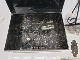 356 Lots including; Antique Tessellated Carved Oak Table, Victorian Sofa, Vintage Maple Beveled Vanity Mirror, Ikea Hesstun King Mattress w/Box Springs, Black Steel Mesh Patio Table w/4 Chairs & Umbrella, File Cabinets, Vtg. Wood Chests, Sound Equipment, Cast Iron Cookware, Uranium Glassware, Colorful/Crystal/Clear Glassware, Milk Glass, Fine China, Pottery, Vtg. Tins, Woven Baskets, Clocks, Antique/Vintage Literature, Assorted Kitchen/Cookware, Assorted Tools/Hardware, Vtg. Holiday Ornaments/Decor, Vtg. Radio Tube Equipment, Household Goods, Rugs & Much More!!!