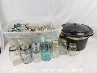 Lot #0083: Canning Pot w/Insert & Various Vtg. Canning Jars