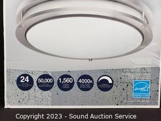 Lot Details: Brushed nickel finish, frosted glass lens, integrated LED's. 24W, 1,560LM, 4000K color. Works, don't see any issues.