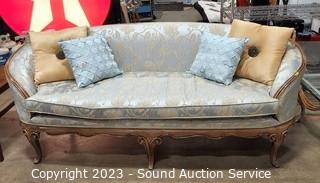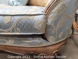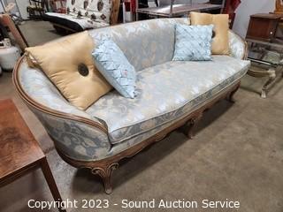 Lot #0004: Victorian Floral Print Wood Accent Sofa