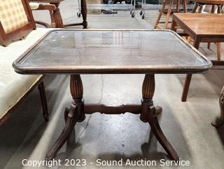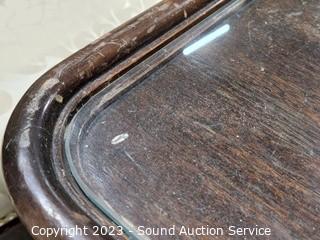Lot Details:  Oak or mahogany, various wear to finish. 22"  H x 28" W x 20" D.