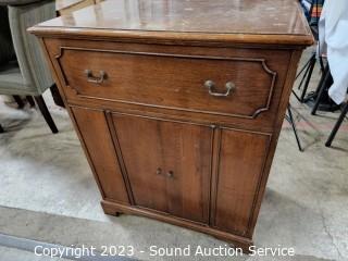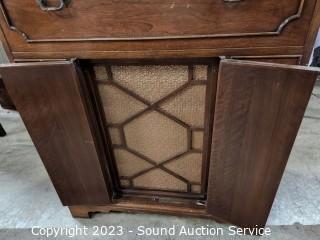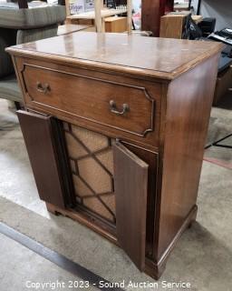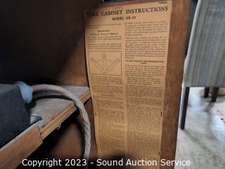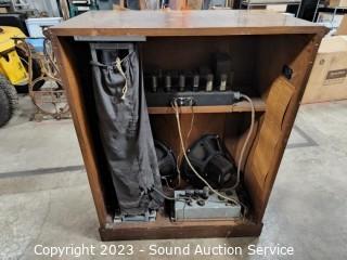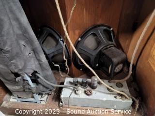 Lot Details: 39" H x 31" W x 18" D. Untested, as is. No power cord. Various scuffs, scratches in finish. Believe goes to Hammond organ sold in a previous auction.