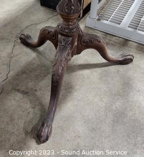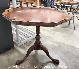 Lot #0018: Vtg. Mahogany Piecrust Top Carved Claw Foot Table
