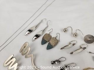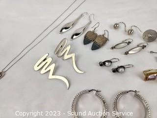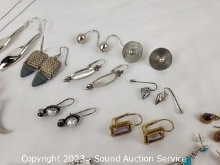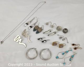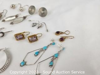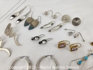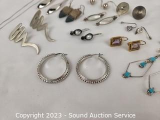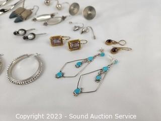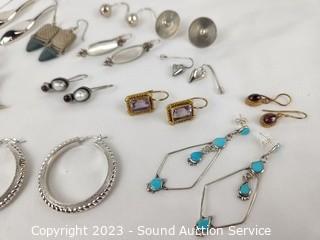 Lot #0206: 12 Pairs Sterling Silver Earrings
