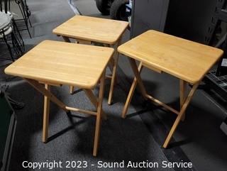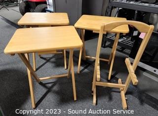 Lot #0009: 3 Maple Finish Wood TV Trays w/Stand