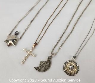 Lot #0183: 4 Sterling Chain Necklaces w/Pendants