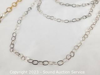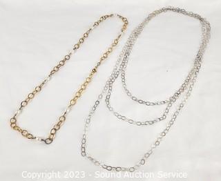 Lot Details: believe chain is meant to be worn as a layer necklace, 88" long overall. Pearl necklace is 30" long. TW:66.9g.