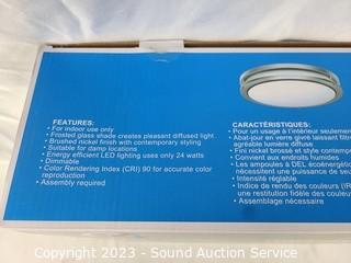 Lot Details: 24W, 1,560LM, 4000K color. Frosted glass lens, brushed nickel finish. Integrated LED's.