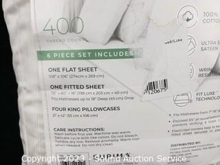 Lot #0319: Hotel Signature King 6pc White Sateen Sheet Set