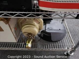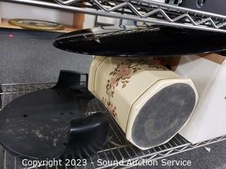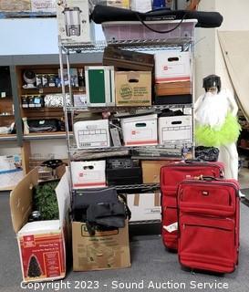 Lot Details: 7ft Pine Tree (lights not working), rolling luggage, turntable, brew station, VHS player, various bags, various household goods & more. Some item's may not be working or damaged, some may be fine no issues, all as is. Cart NOT included. Don't see any issues.