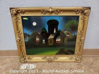 Lot Details: 21" x 25". Don't see a signature. Frame has some chips in finish.