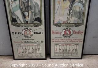 Lot #0054: 2 1928 Native Print Great Northern R.R. Calendars