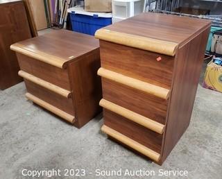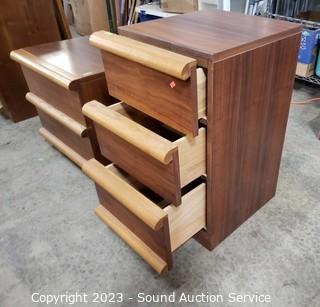 Lot Details: 2-Drawer 21" H x 22" W x 19" & 3 Drawer 29" H x 16" W x 19" D. Matches the previous lot. Some light wear to finish, scuffs, scratches overall great condition. Appears to be solid wood construction, teak veneer finish.