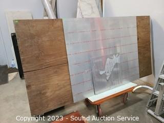 Lot #0338: 4 Sheets of Plywood & 2 Pieces of Sheet Metal