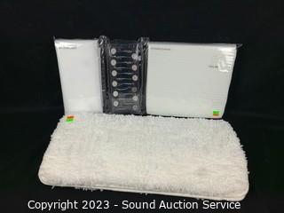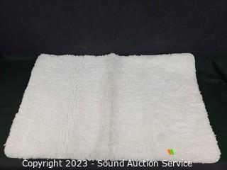 Lot Details: 16" x 24" Rug (some dirty spots from storage), shower curtain, shower liner, shower hooks.