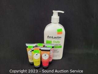Lot Details: 1oz scented hand creams, 20" AmLactin lotion. All full or mostly full.