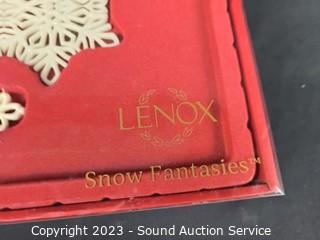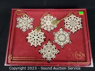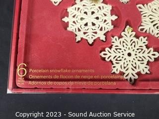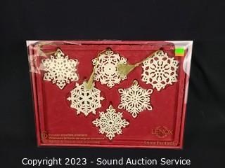 Lot #0227: 5pk Lenox Ivory Porcelain Snowflake Ornaments