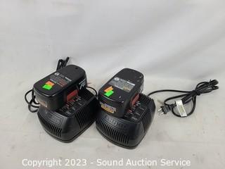 Lot Details: All work. Comes with 2 batteries, 2 chargers, leaf blower & chains.