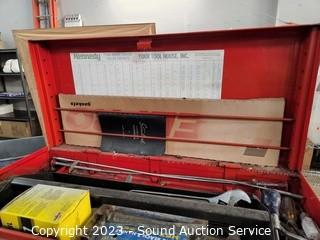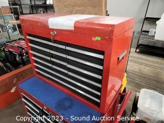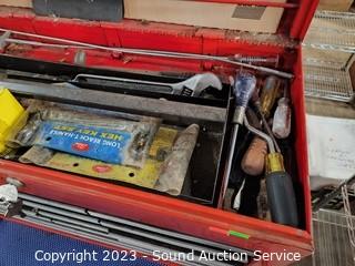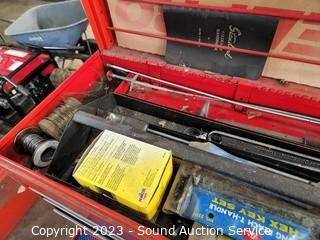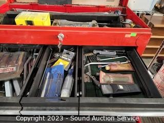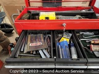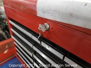 Lot Details: Both top & bottom are locking with keys. Various tools, sockets, wrenches, ratchets, punches, hex key wrenches, etc. Refer to photos for lot contents. 53" H x 27" W x 18" D.