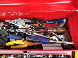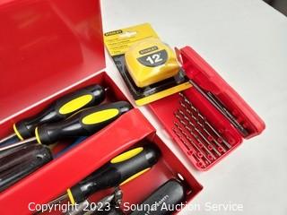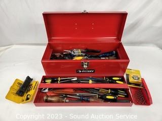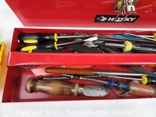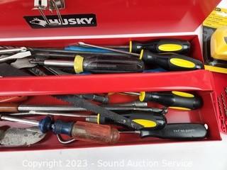 Lot #0087: Husky 19" Red Steel Tool Box w/Tools