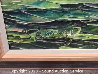Lot Details: Signed Sammy. Thick layers of paint, nice wood frame. Beautiful piece. 38.5" x 62".