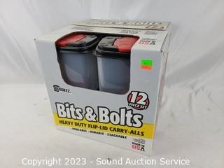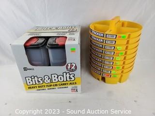 Lot #0043: 12pc Bits & Bolts & 9 Stacker Buckets Organizers