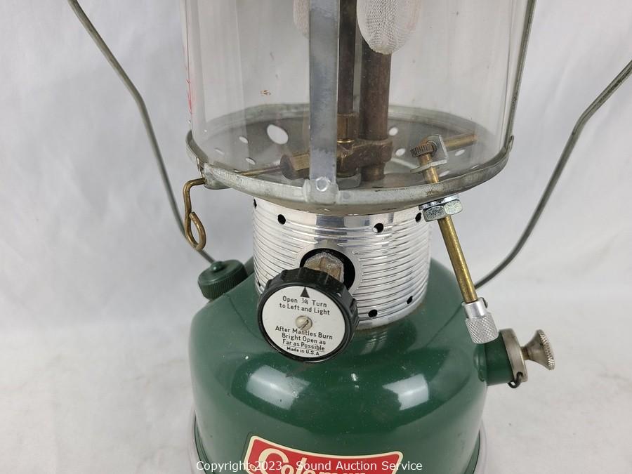 Lot Details: Has some fuel, comes with mantles, replacement parts, funnel wrench. Top has a chip near nut, otherwise great condition. Model 228F195.