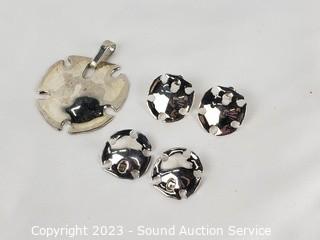 Lot #0107: 2 Pairs RLM Studio Sterling Earrings & Pendant