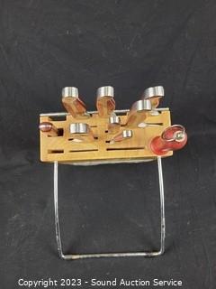 Lot Details: Handles have some cracking where they are pinned, tape residue on knives and block.