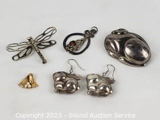 Lot #0184: Sterling Brooches. Pendants & Earrings