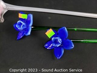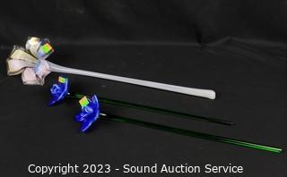 Lot #0101: 1 Murano & 2 Other Art Glass Flowers