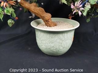 Lot #0029: Stone or Glass Leaf Faux Houseplant Sculpture