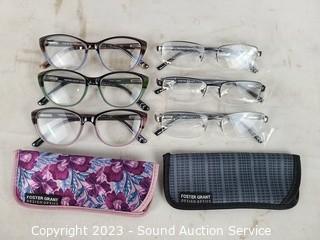 Lot #0229: 6 Foster Grant +2.0 Reading Glasses w/2 Cases
