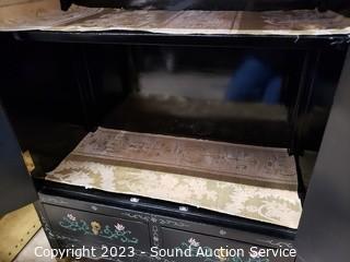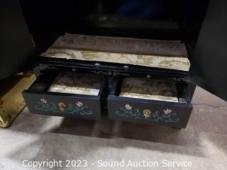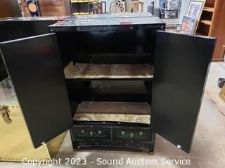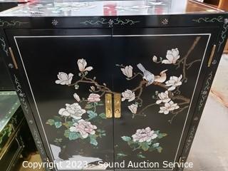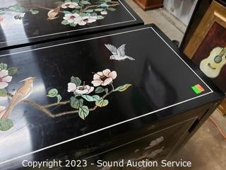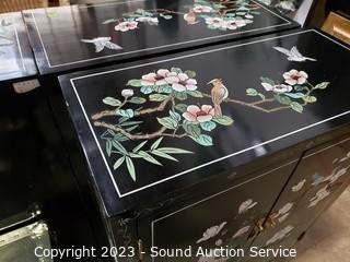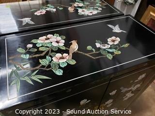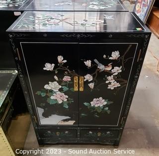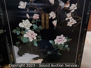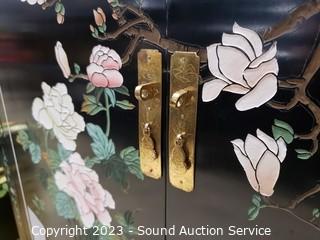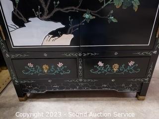 Lot #0006: Black Lacquered Preening Bird & Peonies Cabinet