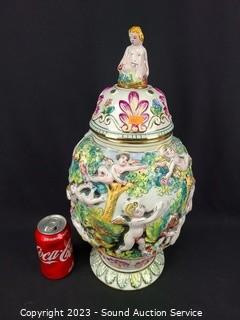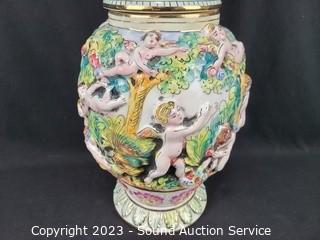 Lot #0058: Capodimonte Italy Hand Painted Cherub Urn