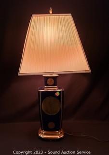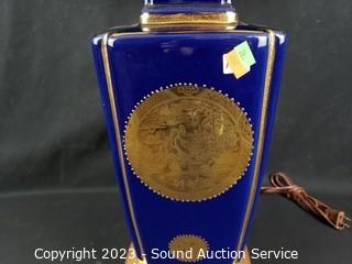 Lot #0026: Nice Cobalt Gold Medallion 33" Lamp - Works
