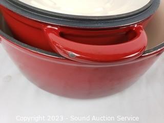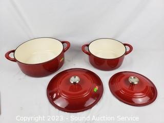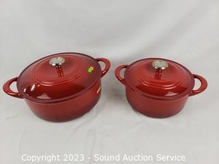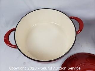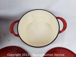 Lot #0255: Tramontina 4&7qt Cast Iron Red Enamel Roasters