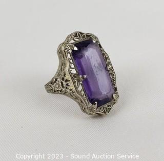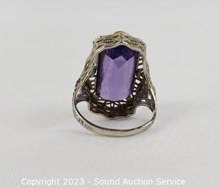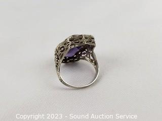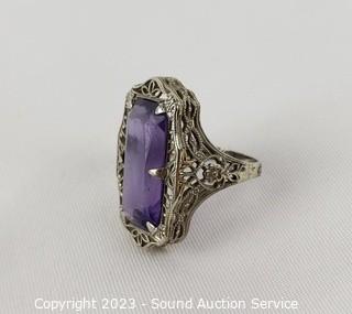 Lot #0187: 10k White Gold & Purple Stone Ring S:4