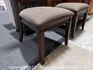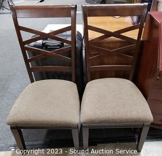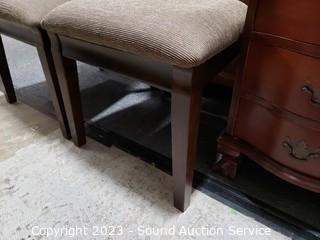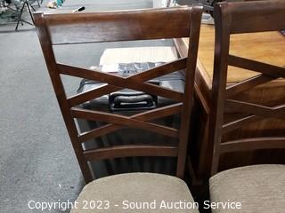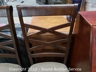 Lot Details: Dark finish. 41" H x 20" W x 18" to seat.