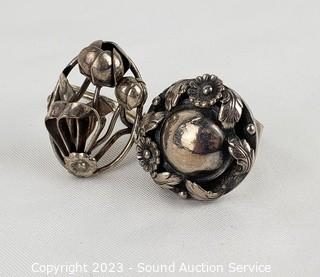 Lot #0193: 2 Sterling Handmade & Denmark Art Nouveau Rings
