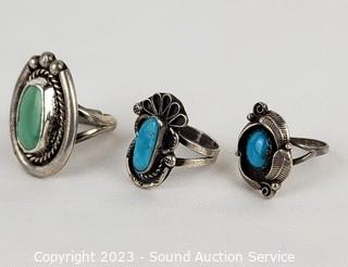 Lot #0213: 3 Silver & Turquoise Art Nouveau Style Rings