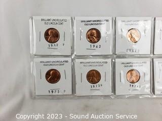 Lot Details: 1909 VDB cent, (8) 2009 Lincoln cent series, (10) 1956-1981 BU Lincoln cents, (12) 1943 Steel War Cents. ATTN: We are not coin or currency experts or graders, please use your own judgement when bidding.