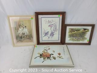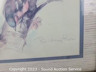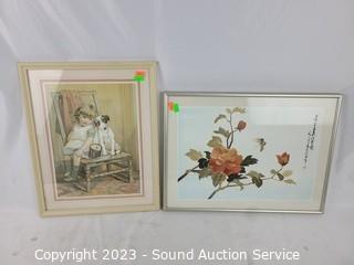 Lot Details: Original? Paul Whitney Hunter Bird Art, Signed Asian Original Straw Art, Child & Dog Print & Farm Print. Approx. 10.5" x 13.5" to 12" x 16".