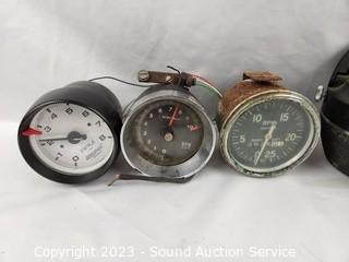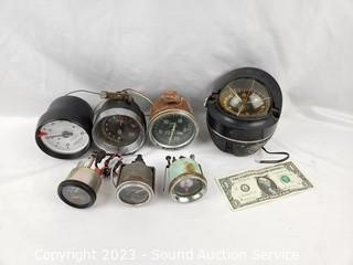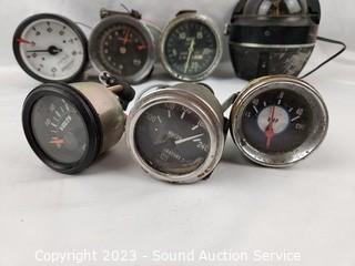 Lot #0155: Assorted Automotive Gauges & Nautical Compass