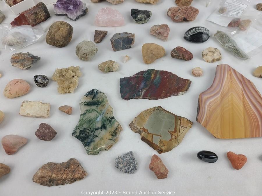 Lot #0217: Assorted Collectible Stones & Small Display Case
