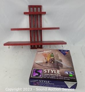 Lot #0263: Glass Corner Shelf & 3 Tier Shelf w/Hooks