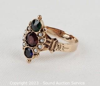 Lot #0209: Vtg. 14k Gold Multi-Stone Ring S:6.5.