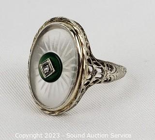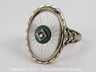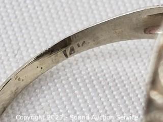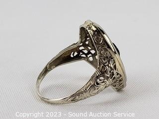 Lot #0190: Vtg. 14k White Gold Ring w/Diamond Sittings S:6.5
