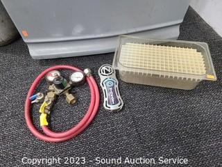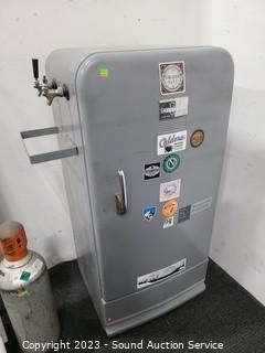 Lot Details: Believe it is working, feels colder inside than outside. some stickers on the door, wear to finish. Comes with a regulator & CO2 Tank. 52" H x 23" x 23".