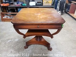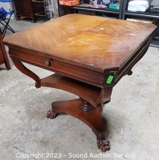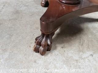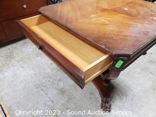 Lot #0330: Vtg. Mahogany Claw Foot Single Drawer Table